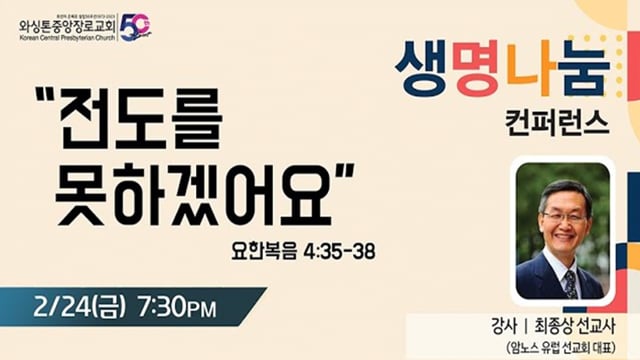 주제: 기도하면 살아나리라 / 강사: 이인호 목사 (더사랑의 교회)