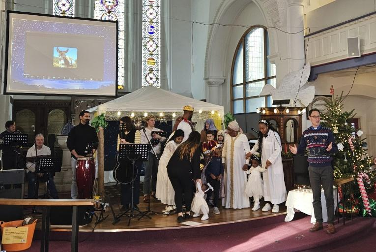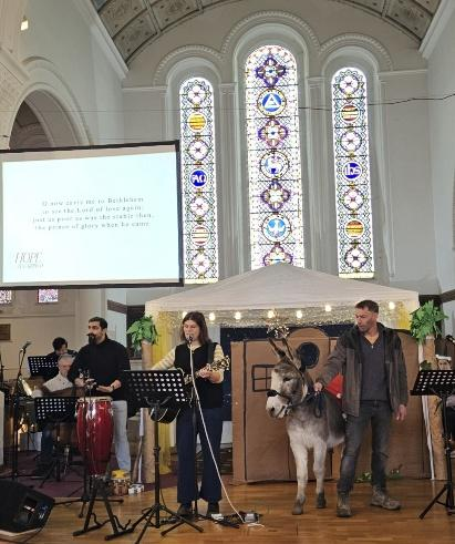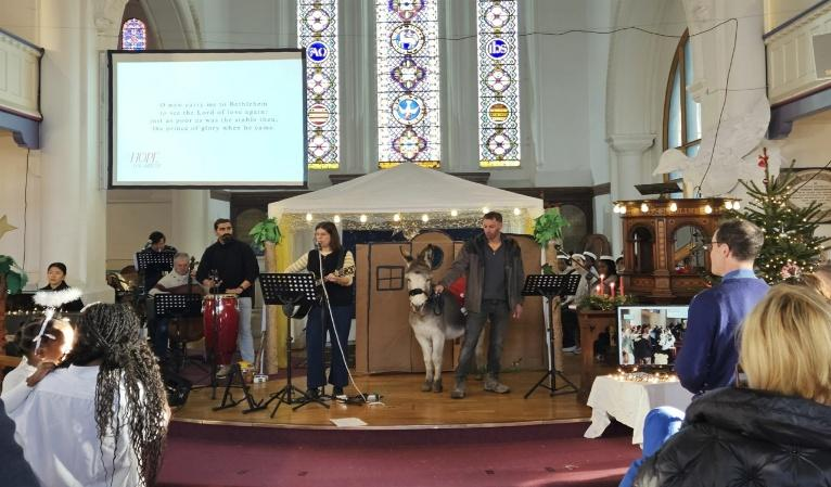 4. 성 베드로 교회 (St. Peter’s Church) 주민초청 성탄행사: 8년에 걸쳐 저희와 선교 동역을 하고 있는 성 베드로교회에서는 성탄절을 맞이하여 지역 주민들을 대상으로 다양한 선교 행사를 계획하고 진행하였습니다. 12월 한 달 동안 한 복음적인 성공회 교회가 어떻게 성탄절을 준비하며 지역 주민들에게 다가가고 있는지를 가까이 지켜볼 수 있었고 함께 할 수 있어서 감사했습니다. 아래의 사진들은 12월 14일에 있었던 NATIVITY Event (아기예수 탄생 이야기 행사)와 관련된 것인데요. 실제로 살아있는 당나귀가 예배당 강단에 마련된 마구간까지 들어와 회중들을 놀라게 하기도 했지만, 다양한 인종들로 구성된 회중들이 구세주 예수님이 어떻게 이 땅에 아기로 탄생하게 되었는지를 듣고 기쁘게 예배를 드렸습니다.