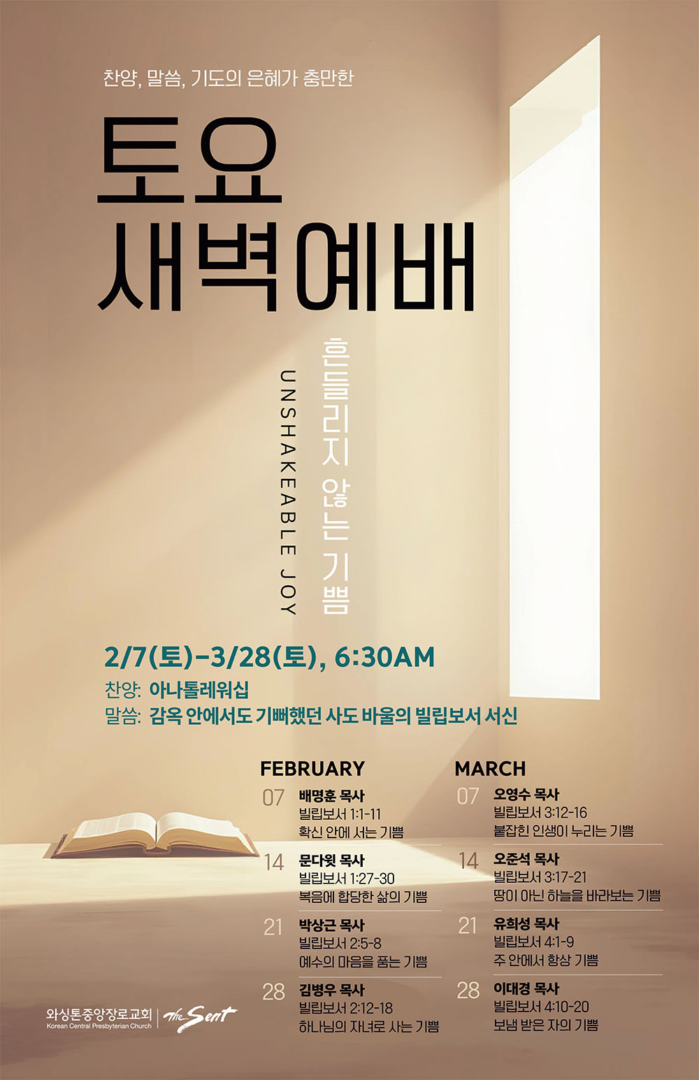 - 주제: Unshakeable Joy 흔들리지 않는 기쁨