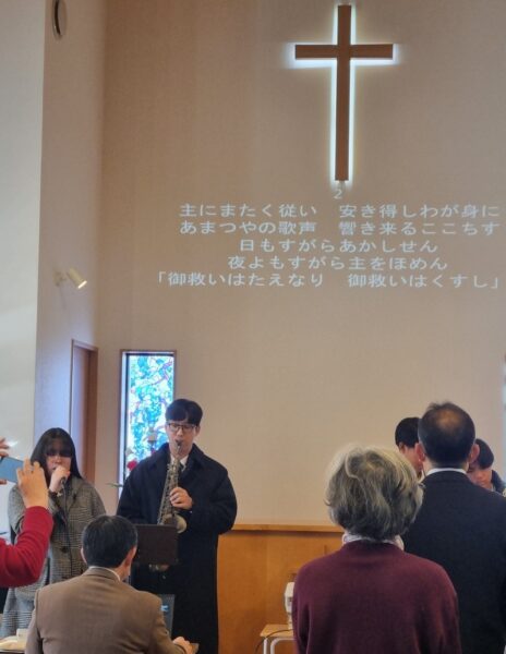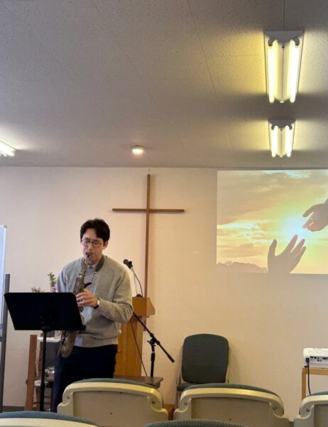 타카마쓰의 작은 교회들이 모인 신년 예배에서 색소폰으로 하나님께 찬송하게 하셨습니다. 부족한 실력의 연주이지만 저는 연주라고 생각하지 않습니다. 저는 나팔을 들고 설 때마다 이곳에서 하나님을 예배한다고 생각하며 호흡을 불어넣습니다. 호흡이 악기로 들어갈 때면 주님께서 제게 호흡을 불어 넣어 주시는 것 같은 느낌을 받습니다. 주님께서 기드온의 나팔을 불 때 300명의 용사들이 일어났던 것처럼 저를 통해 하나님의 은혜의 소리가 일본 땅에 울려 퍼져서 죽은 영혼들이 주님을 바라보길 기도합니다. 부족한 자를 통해 영광을 받으시는 주님께 감사하며 찬송합니다.