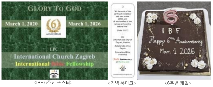 - (감사) IBF 설립 6주년 기념 예배에 풍성한 은혜를 베풀어 주심에 감사드립니다.