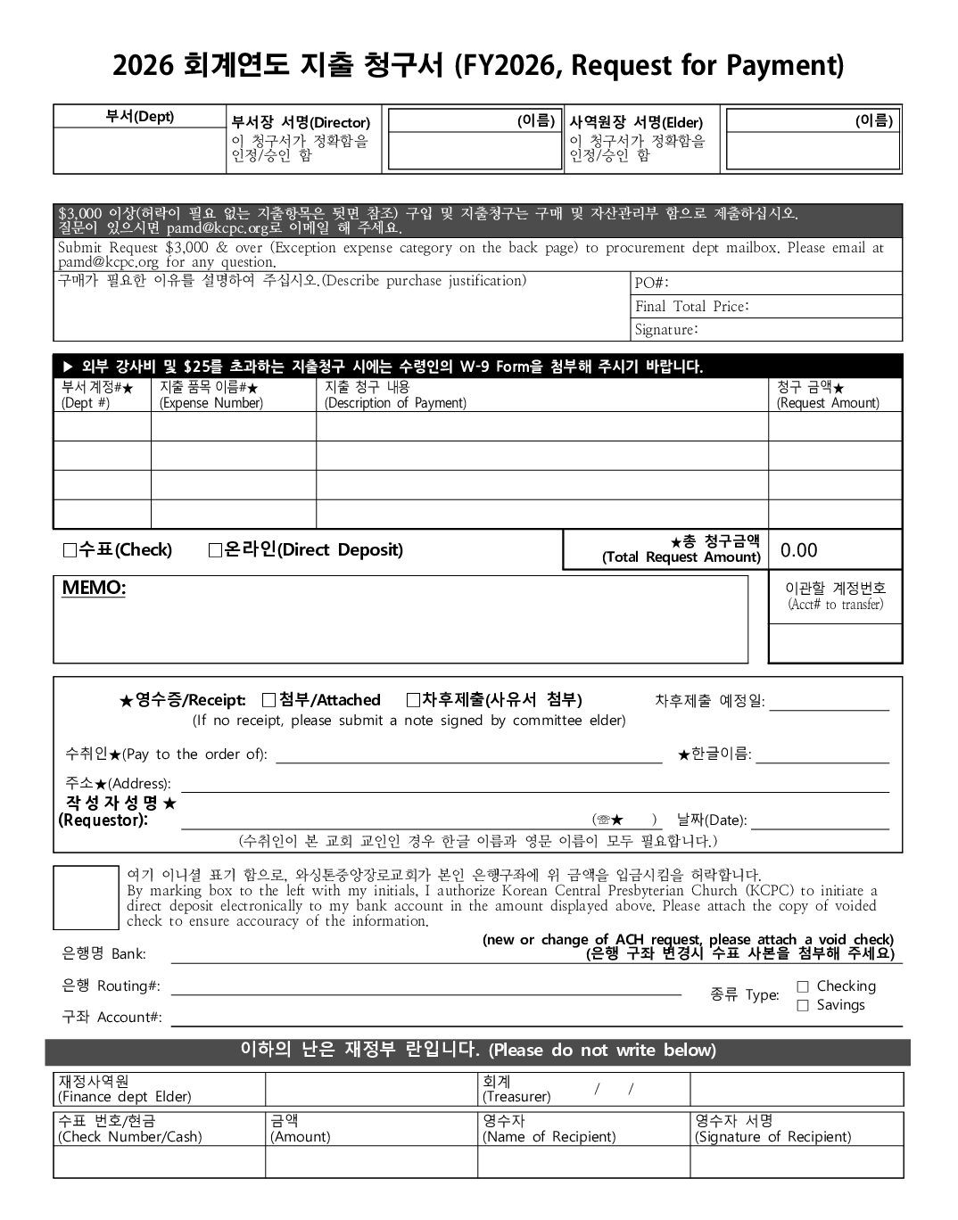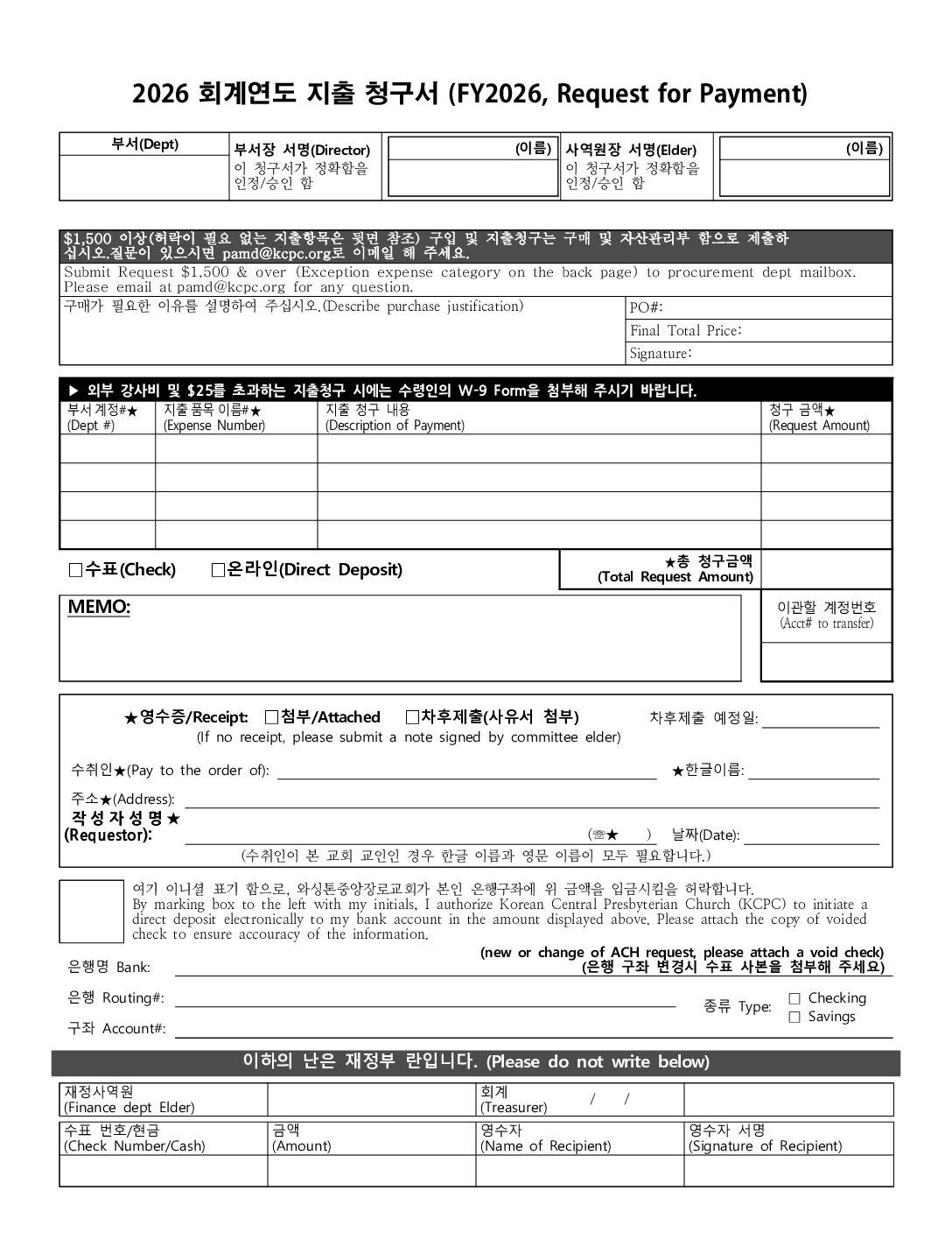 2025회계연도 지출 청구서 FY 2025, Request for Payment